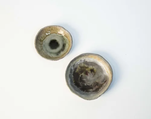 These works are made during a summer workshop at Boisbuchet. The pieces are hybrids, between clay and glass, or between black and white firing clay. This was my first experience with hand-building pieces. The most unique part of the experience was that the works were then fired in a wood-fired kiln. This made the results unpredictable and so exciting.